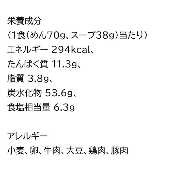 栄養成分(1食(めん70g、スープ38g)当たり)